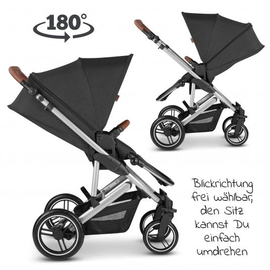 Das Kinderwagen-Set Aversa 4 – Woven Black von Circle by ABC Design ist ein hochwertiger Begleiter, das mit komfortabler Babywanne, umsetzbarer Sitzeinheit und pannenfesten Luftkammerrädern überzeugt. Neben Gestell, Wanne und Sportwagenaufsatz, besteht das Set aus dem passenden Autositz und Adapter. So bist Du von Anfang an perfekt ausgestattet. Dazu sieht die Kombination aus grauem Melange-Stoff und Eco-Leder auch prima aus.