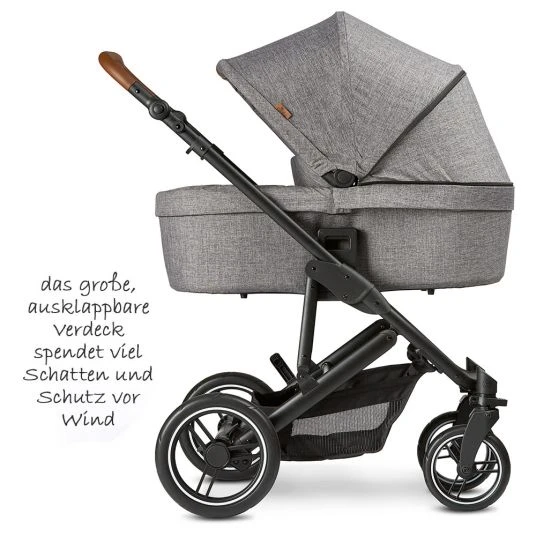Das Kinderwagen-Set Catania 4 – Woven Graphite von Circle by ABC Design ist ein hochwertiger Begleiter, das mit komfortabler Babywanne, umsetzbarer Sitzeinheit und pannenfesten Luftkammerrädern überzeugt. Neben Gestell, Wanne und Sportwagenaufsatz, besteht das Set aus dem passenden Autositz und Adapter. So bist Du von Anfang an perfekt ausgestattet. Dazu sieht die Kombination aus grauem Melange-Stoff und Eco-Leder auch prima aus.