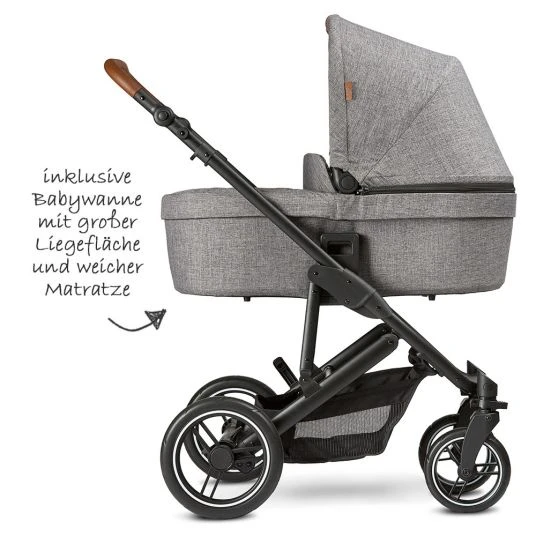 Das Kinderwagen-Set Catania 4 – Woven Graphite von Circle by ABC Design ist ein hochwertiger Begleiter, das mit komfortabler Babywanne, umsetzbarer Sitzeinheit und pannenfesten Luftkammerrädern überzeugt. Neben Gestell, Wanne und Sportwagenaufsatz, besteht das Set aus dem passenden Autositz und Adapter. So bist Du von Anfang an perfekt ausgestattet. Dazu sieht die Kombination aus grauem Melange-Stoff und Eco-Leder auch prima aus.
