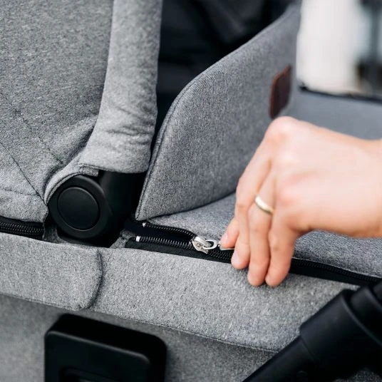Der Zoom ist ein echter Verwandlungskünstler und bietet zahlreiche Kombinationsmöglichkeiten. Die Kleinsten fahren am besten in der kuscheligen Babywanne. Die Schutzdecke und das weiche Innenleben halten dein Baby an kühlen Tagen schön warm. Im Sommer kannst du das Verdeck per Reißverschluss öffnen. So weht eine frische Brise durch die Wanne.