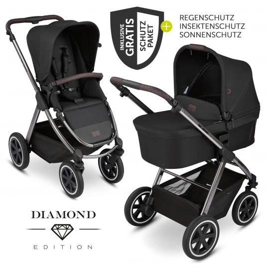 Der Kombi-Kinderwagen Samba – Diamond Edition – Dolphin von ABC Design ist ein sehr gut ausgestatteter Allrounder auf 4 Rädern. Er ist sehr leicht und bietet durch seine All-Terrain Bereifung mit Luftkammerrädern ein sehr breites Einsatzspektrum. Dank des extrem kleinen Faltmaßes bekommst Du ihn auch in einen kleinen Kofferraum. Im Vergleich zu den anderen Modellen von ABC-Design musst Du hierzu nicht mal den Sportwagen abnehmen. Dabei bietet er den gleichen Komfort wie die anderen Modelle.