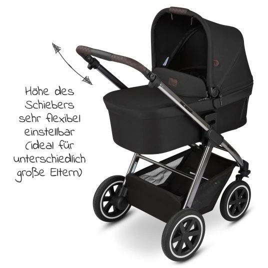 Bestens untergebracht geht es auf Tour. Dabei hat der Samba auch für Eltern ein paar Highlights. Der Schieber ist höhenverstellbar und ermöglicht Mama und Papa Spazierfahrten in bequemer Körperhaltung. Der Samba ist auch für große Eltern geeignet, da er zwischen den Hinterrädern viel Beinfreiheit bietet. Noch mehr Erleichterung im Alltag bietet der große Einkaufskorb. Hier kannst Du sperrige und schwere Sachen unterbringen und sparst so Kraft und Nerven.