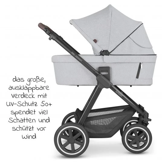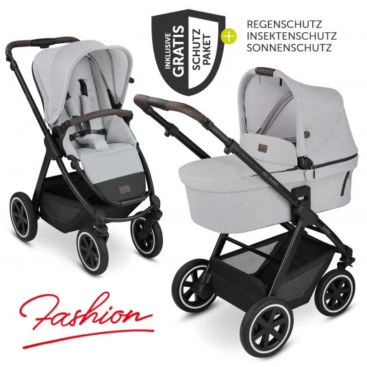 Der Kombi-Kinderwagen Samba – Fashion Edition – Mineral von ABC Design ist ein sehr gut ausgestatteter Allrounder auf 4 Rädern. Er ist sehr leicht und bietet durch seine All-Terrain Bereifung mit Luftkammerrädern ein sehr breites Einsatzspektrum. Dank des extrem kleinen Faltmaßes bekommst Du ihn auch in einen kleinen Kofferraum. Im Vergleich zu den anderen Modellen von ABC-Design musst Du hierzu nicht mal den Sportwagen abnehmen. Trotzdem bietet er den gleichen Komfort wie die anderen Modelle.