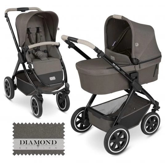 Der Kombi-Kinderwagen Samba – inkl. Babywanne und Sportsitz – Diamond Edition in Herb von ABC Design ist ein sehr gut ausgestatteter Allrounder auf 4 Rädern. Er ist superleicht und bietet durch seine All-Terrain Bereifung mit Luftkammerrädern ein sehr breites Einsatzspektrum. Dank des extrem kleinen Faltmaßes bekommst Du ihn auch in einen kleinen Kofferraum. Im Vergleich zu den anderen Modellen von ABC Design musst Du hierzu nicht mal den Sportwagen-Aufsatz abnehmen. Trotzdem bietet er den gleichen Komfort wie die anderen Modelle.