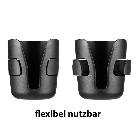 Regelmäßiges Trinken ist wichtig. Mit dem praktischen Getränkehalter hast du ein Fläschchen oder Erfrischungsgetränk jederzeit griffbereit. Der Getränkehalter fasst Behälter mit bis zu 500 ml Inhalt. Dabei passt er sich flexibel der Breite des Behälters an.