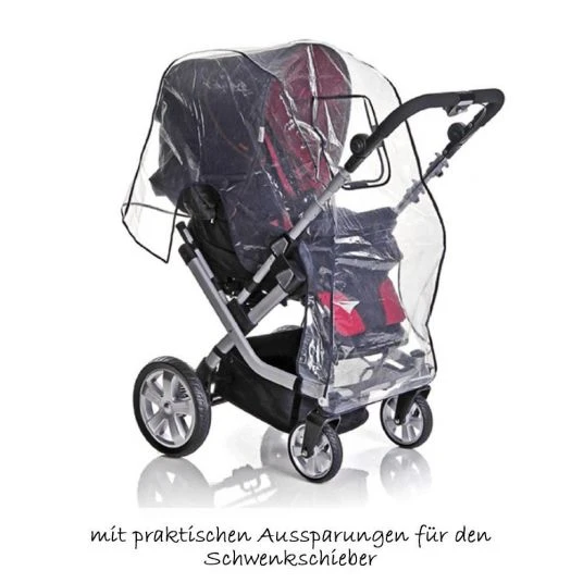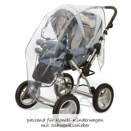 Mit dem Komfort-Regenschutz für Kombi-Kinderwagen von Diago schützen Sie Ihr Kind beim Spazierengehen zuverlässig vor Nässe. Der transparente Regenschutz passt auf Kinderwagen mit Schwenkschieber und verhindert ein lästiges Einklemmen der Folie beim Seitenwechsel des Schiebers. Mit Hilfe von Klettverschlüssen hinten und Gummibändern vorne, lässt er sich ganz leicht anbringen und auch wieder lösen.