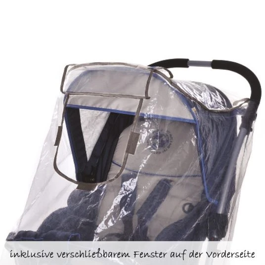 Das Fenster auf der Vorderseite kann geöffnet werden, damit Ihr Kind ungehindert hinausschauen kann und mehr frische Luft bekommt. Außerdem erreichen Sie Ihr Kind so besser, um ihn zum Beispiel sein Fläschchen zu reichen. Bei Regen und Wind wird das Fenster per Klettverschluss verschlossen. Durch die transparente Folie kann Ihr Kind trotzdem seine Umwelt betrachten und auch Sie haben immer freie Sicht auf Ihren Nachwuchs. Die Folie entspricht der Norm EN 71 und enthält keine gesundheitsgefährdenden Weichmacher.
