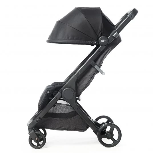 Der Metro+ hat einen durchgehenden Schiebegriff und ermöglicht so auch einhändiges Manövrieren. Mit schmalen, leichtgängigen und pannenfreie Räder aus PU (Polyurethan). Die schwenkbaren Vorderräder kommen um jede Kurve. Die Federung gleicht kleine Unebenheiten spielend leicht aus. So wird jede Bordsteinkante zum Kinderspiel. Die leicht zu bedienende One-Touch Fußbremse stoppt den Wagen sicher.