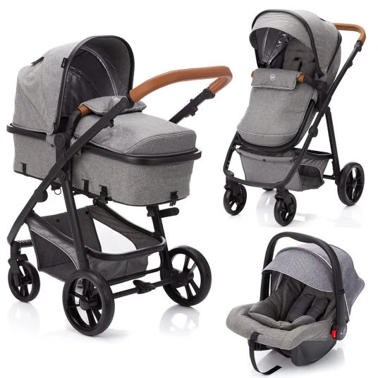 Das 3 in 1 Kinderwagenset Fill Panther Hellgrau Melange mit der zum Sportsitz umbaubarer Babywanne ist ein innovatives Kinderwagenset, welches den modernen Eltern von heute größtmöglichen Nutzen bietet. Es besteht aus einem Gestell, einer umbaubaren Babywanne und einer Gr. 0 Babyschale. Du kannst die Babywanne sowohl in als auch entgegen der Fahrtrichtung aufsetzen und zu einem vollwertigen Sportsitz mit 5-Punkt-Gurt umbauen. So kommen auch kleine Mitfahrer, die schon selbstständig sitzen können, voll auf ihre Kosten.