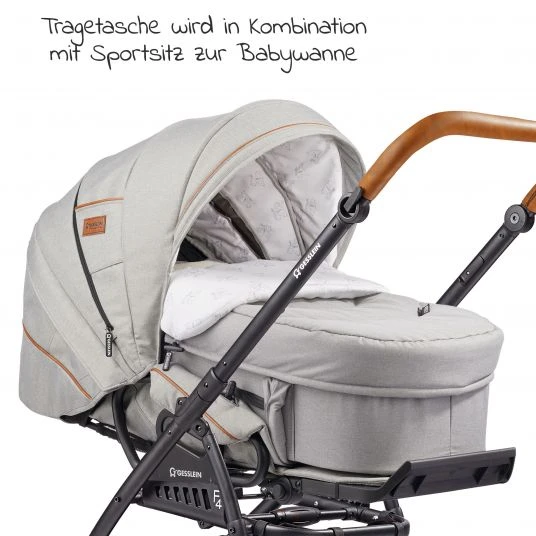 Du möchtest flexibel mit Kinderwagen unterwegs sein und Dein Kind von Anfang an sicher und bequem transportieren? Egal ob Du in der Stadt oder auf dem Land wohnst – mit dem 2in1 Kombi-Kinderwagen F4 Air + Classic mit C2 Tragetasche von Gesslein in Schwarz-Cognac-Granitgrau seid ihr perfekt ausgestattet. Mit der Kombination aus Buggy und Baby-Tragetasche bist Du flexibel unterwegs und hast gleichzeitig ein praktisches Nestchen für Dein Kleines dabei. Nachhaltigkeit: Die Gesslein Kinderwagen werden in Deutschland genäht und unter fairen Produktionsbedingungen hergestellt. Alle verwendeten Stoffe sind schadstoffgeprüft und entsprechen dem Oeko-Tex® Standard 100.