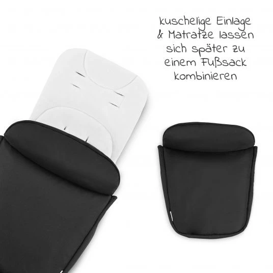 Schon vom ersten Lebenstag an liegt Dein Baby kuschelig bequem: Die weiche Einlage der Babywanne lädt zum Wohlfühlen und Träumen ein. Dank der Wannenabdeckung und des großen Verdecks ist Dein kleiner Liebling vor Regen, Wind und Sonne bestens geschützt. Kann Dein Nachwuchs einige Zeit später schon selbstständig sitzen, kannst Du die Wanne in einen Sportwagensitz verwandeln. Besonders praktisch: Die Wannenabdeckung und die kuschelige Matratze der Wanne lassen sich zu einem Fußssack für den Sportsitz kombinieren.