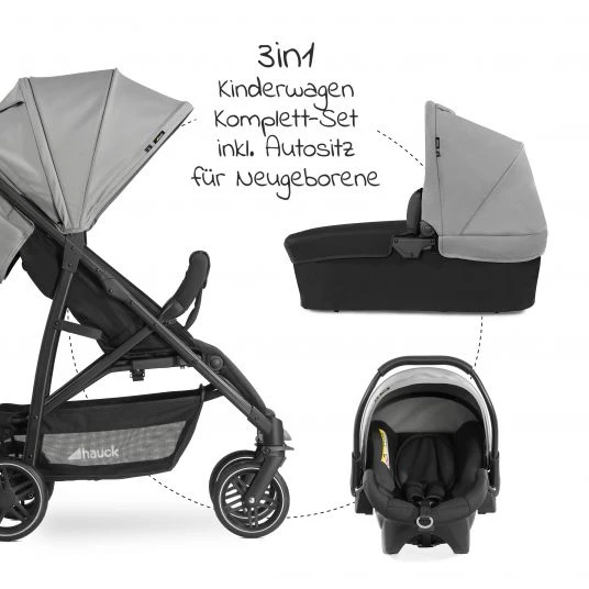 Schon ab der Geburt kann es im Hauck Rapid 4R Plus Trioset losgehen: In der kuschelig weich gepolsterten Babywanne liegt Dein Baby vom ersten Tag an bequem und sicher. Dabei begleitet euch der sportliche, vierrädrige Kinderwagen und Buggy über fast jeden Untergrund.