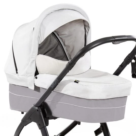 Mit der Babywanne Saturn von Hauck verwandelst Du Deinen Sportwagen in einen kuscheligen Erstlingswagen. Die moderne Babywanne ist mit einem weich gepolsterten Innenleben und einer bequemen Matratze ausgestattet. So liegt Dein Neugeborenes bestens eingebettet. Das große, aufklappbare Verdeck schützt vor Sonne und Wind, die mitgelieferte Abdeckung vor Kälte, Nässe und Zugluft. Du befestigst Sie einfach per Reißverschluss an der Wanne. So bleibt sie auch bei schlechtem Wetter immer an der richtigen Stelle. Für den Transport lässt sich die Babywanne schnell und einfach zusammenfalten. So passt sie z.B. prima ins Auto. Unterwegs kannst Du sie beruhigt abstellen. Kleine Füße sorgen dafür, dass die Wanne stabil steht und der Boden nicht schmutzig wird. Die Wanne kannst Du einfach auf das Apollo-Gestell setzen. Ein Adapter ist nicht nötig.