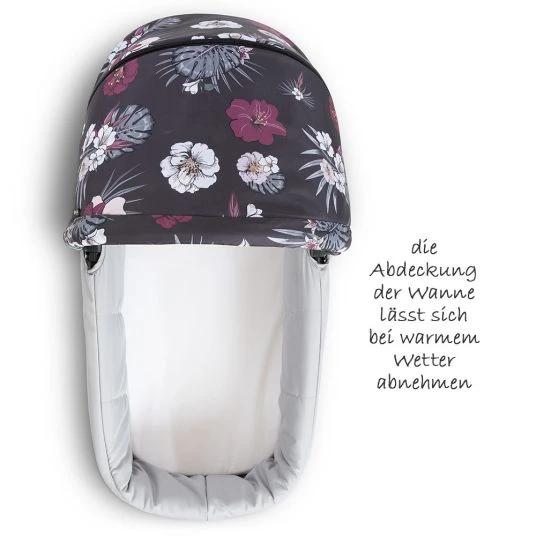 Mit der Babywanne für Saturn und Mars von Hauck verwandelst Du Deinen Sportwagen in einen kuscheligen Erstlingswagen. Die moderne Babywanne ist mit einem weich gepolsterten Innenleben und einer bequemen Matratze ausgestattet. So liegt Dein Neugeborenes bestens eingebettet. Das große, aufklappbare Verdeck schützt vor Sonne und Wind, die mitgelieferte Abdeckung vor Kälte, Nässe und Zugluft. Du befestigst Sie einfach per Reißverschluss an der Wanne. So bleibt sie auch bei schlechtem Wetter immer an der richtigen Stelle. Für den Transport lässt sich die Babywanne schnell und einfach zusammenfalten. So passt sie z.B. prima ins Auto. Unterwegs kannst Du sie beruhigt abstellen. Kleine Füße sorgen dafür, dass die Wanne stabil steht und der Boden nicht schmutzig wird. Die Wanne kannst Du einfach auf das Saturn- oder Mars-Gestell setzen. Ein Adapter ist nicht nötig.