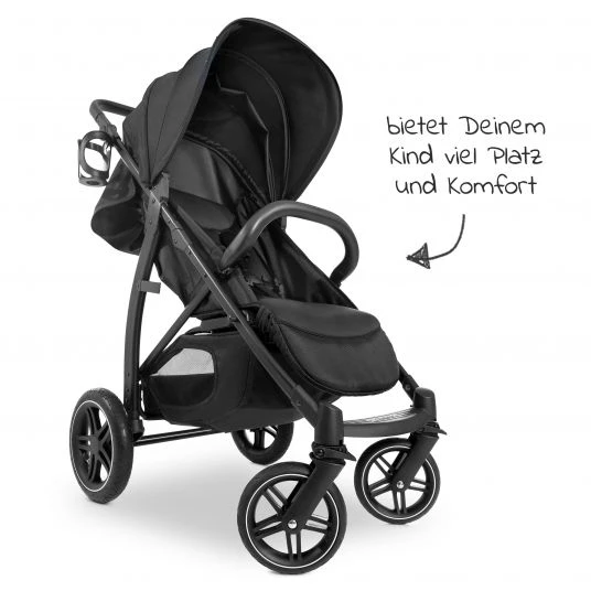 Sei es in der lebhaften Stadt oder bei einem Ausflug in die Natur auf holprigen Wald- und Feldwegen: Der Hauck Rapid 4D AIR in Black bietet Dir und Deinem kleinen Weltentdecker auf jedem Untergrund einen hervorragenden Sitz- und Fahrkomfort. Große Lufträder hinten und pannensichere All-Terrain Räder vorne meistern alle Unebenheiten und federn diese gekonnt ab. Die 360° schwenkbaren Vorderräder sind sehr wendig erweisen sich im Stadtleben als besonders vorteilhaft.