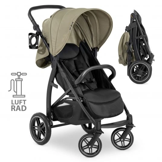 Sei es in der lebhaften Stadt oder bei einem Ausflug in die Natur auf holprigen Wald- und Feldwegen: Der Hauck Rapid 4D AIR in Olive bietet Dir und Deinem kleinen Weltentdecker auf jedem Untergrund einen hervorragenden Sitz- und Fahrkomfort. Große Lufträder hinten und pannensichere All-Terrain Räder vorne meistern alle Unebenheiten und federn diese gekonnt ab. Die 360° schwenkbaren Vorderräder sind sehr wendig erweisen sich im Stadtleben als besonders vorteilhaft.