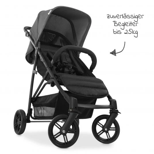- Ausstattung: höhenverstellbarer Schieber (über 30 cm), stufenlos verstellbare Rückenlehne, 5-fach verstellbare Fußstütze, 5-Punkt-Gurt, XL-Ablagekorb, abnehmbares 3-Zonen Verdeck, abnehmbarer Vorderbügel mit Durchrutschschutz