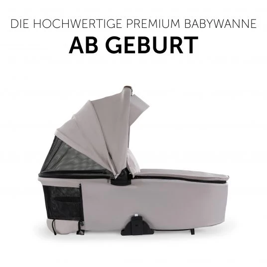 Das hochwertige Design der einzeln erhältlichen Babywanne ist genau auf den Premium- Walk N Care Kinderwagen abgestimmt. Die leichte und stabile Babywanne zeichnet sich durch die Premium-Qualität aller Materialien und ihr großzügiges Design aus. Moderne, pflegeleichte Stoffe außen ergänzen die hochwertige Ausführung innen, die deinem Baby bis 9 kg viel Komfort und Bewegungsfreiheit bieten.