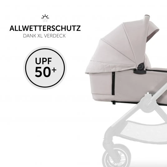 Das Premium-Design wird durch hochwertige, pflegeleichte Textilien sowie zwei XXL Panoramafenster ergänzt, die du individuell öffnen kannst. So ist für optimale Luftzirkulation gesorgt und dein Baby genießt den Blick in Rücken- und Bauchlage. Das 3 Zonen Verdeck mit extra Sonnenblende und UV-Schutz 50+ sowie ein farblich passender Windschutz runden das durchdachte Design ab.