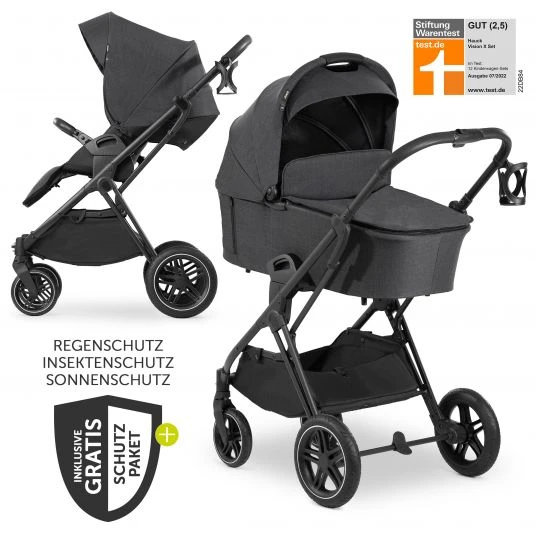Ob in der Stadt oder auf dem Land: Mit dem Kombi-Kinderwagen Vision X Duoset Black sind Du und Dein Kind für unterwegs optimal gerüstet. Das Multitalent ist hochwertig verarbeitet und mit einem federleichten Gestell in schickem Schwarz ausgestattet.