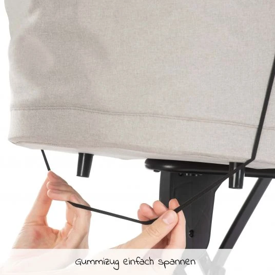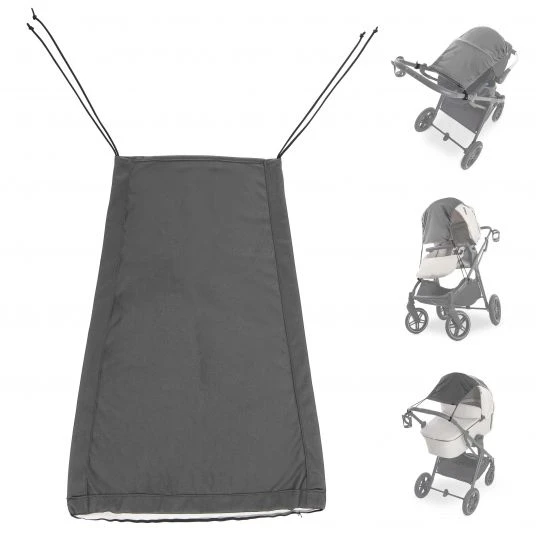 Das Sonnenverdeck ist super leicht zu befestigen: Einfach den Gummizug an der Babywanne oder dem Buggy-Sitz befestigen und die beiden Bänder am Schieber anbringen. Muss der Nachwuchs unterwegs einmal getröstet werden oder Du möchtest ihm ein Spielzeug reichen, kann das Segel einfach zurückgeschoben werden. Wird etwas mehr Schatten benötigt, kannst Du es wieder nach vorne ziehen.