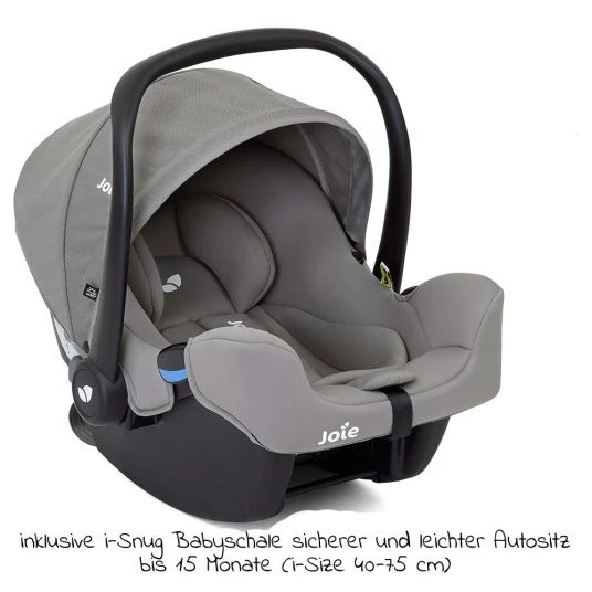Die Babyschale i-Snug i-Size ist Teil des Joie i-Venture Systems: Dieses 3-teilige Set (i-Snug, i-Base Advance, Kindersitz i-Venture) begleitet kleine Passagiere ab dem ersten Tag bis zum Vorschulalter (ca. 4 Jahre, Körpergröße bis 105 cm).