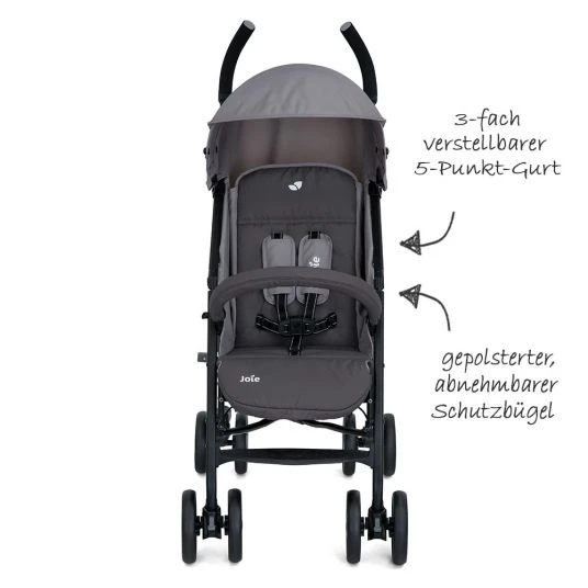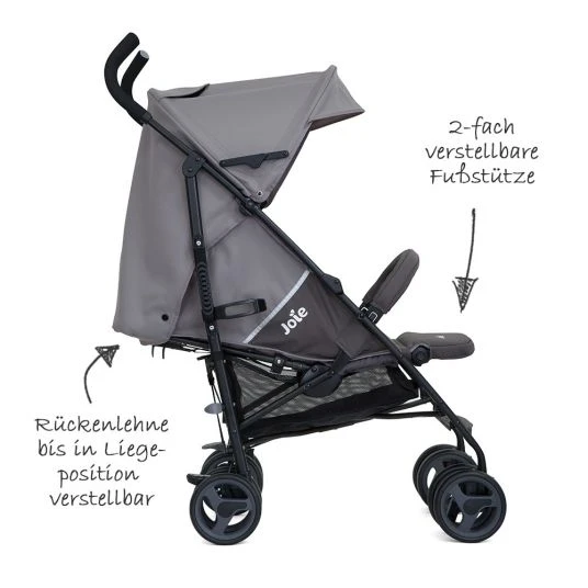 Lässt sich leicht im Kofferraum verstauen und bietet jede Menge Komfort: Der Buggy Nitro LX – Dark Pewter von Joie ist ein richtiges Multitalent. Auch als Reisebuggy geeignet. Mit seinen schwenkbaren Doppelrädern, Federung und der mehrfach verstellbaren Rückenlehne sorgt er bei Groß und Klein für Fahrvergnügen.