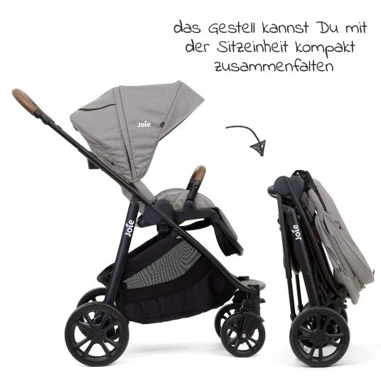 Mit dem Sportwagen Versatrax EGray Flannel mit Getränkehalter, Regenschutz & Adapter kommt Joie dem perfekten Kinderwagen noch ein Stück näher. Der robuste Allrounder überzeugt mit klassischen Ausstattungsmerkmalen, wie einer verstellbaren Rückenlehne, einem großen Verdeck und mitwachsendem 5-Punkt-Gurt mit SoftTouch-Polsterung. Mit den gummierten, Schaumstoffgefüllten Reifen mit Einzelfederung bist Du auf jedem Untergrund laufruhig unterwegs. Außerdem ist der Versatrax E mit einem höhenverstellbaren Schieber mit einem Bezug aus Lederimitat ausgestattet. Praktisch: Mit separat erhältlichem Zubehör kannst Du den Sportwagen bereits ab der Geburt nutzen.