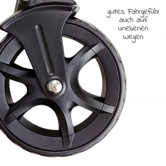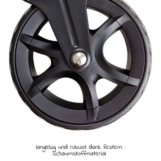 Mit den Joie Ersatz-Rädern gefüllt mit Schaumstoff vorne für Chrome DLX 2er-Set bringst Du Deinen Joie Kombi Kinderwagen aus der Chrome DLX Serie wieder auf Vordermann. Die schaumstoffgefüllten Kunststoffreifen sind schwenkbar, pannenfest und laufruhig. So dämpfen sie mit der Federung kleine Unebenheiten prima ab und Du kommst auch auf unebenen Wegen gut voran.