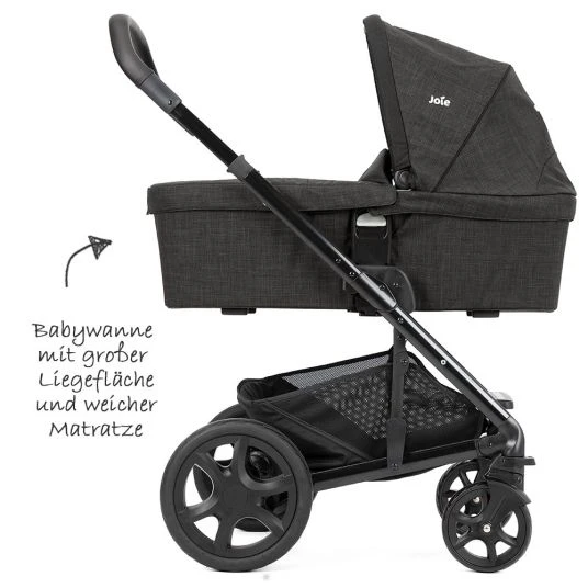 Mit dem Kombi-Kinderwagen Chrome DLX inkl. Babywanne, Fußdecke und Regenschutz – Pavement kannst Du die Vorteile des sportlichen Alleskönners von Joie schon ab dem ersten Tag an nutzen. Auf der 3,5 cm dicken Matratze schläft Dein Kleines weich gebettet. Das ausziehbare Verdeck schützt vor Wind und Wetter. Später tauscht Du die Wanne gegen die umsetzbare Sitzeinheit aus. Dank Liegeposition kann Dein Kind aber auch hier bequem schlafen. Ein höhenverstellbarer Schieber, der große Einkaufskorb und das mitgelieferte Regenverdeck runden das Set ab.