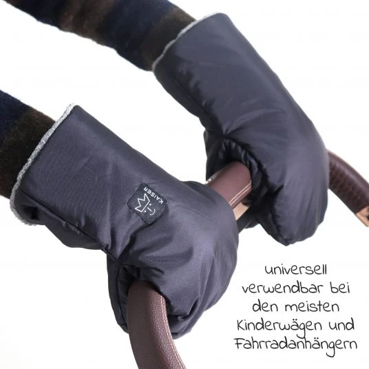 Braucht Dich Dein Kleines, musst Du die Handschuhe nicht mühevoll aus- und wieder anziehen, sondern schlüpfst einfach heraus und wieder rein. Dank der schwarzen Farbe und dem grauen Innenstoff passen die Handschuhe zu jedem Kinderwagen, Buggy oder Fahrradanhänger. Wird es Zeit für eine Reinigung, bringen sie eine Maschinenwäsche bei 30°C wieder zum strahlen.