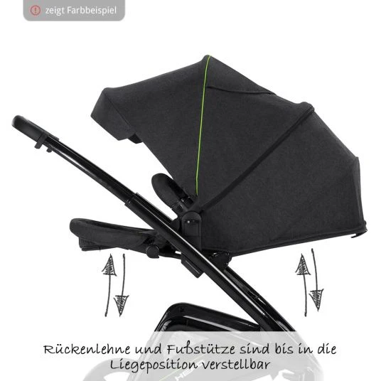 - Ausstattung: schwenk- und feststellbare Vorderräder, beschichtetes Aluminium-Gestell, Babywanne mit Schutzdecke und Tragegriff, Sportwagenaufsatz, mehrfach verstellbare Rückenlehne, gepolsterte, verstellbare Fußstütze, verschließbarer Einkaufskorb, abnehmbarer Schutzbügel, Easy-Fold-Mechanismus, wasserabweisende Bezüge