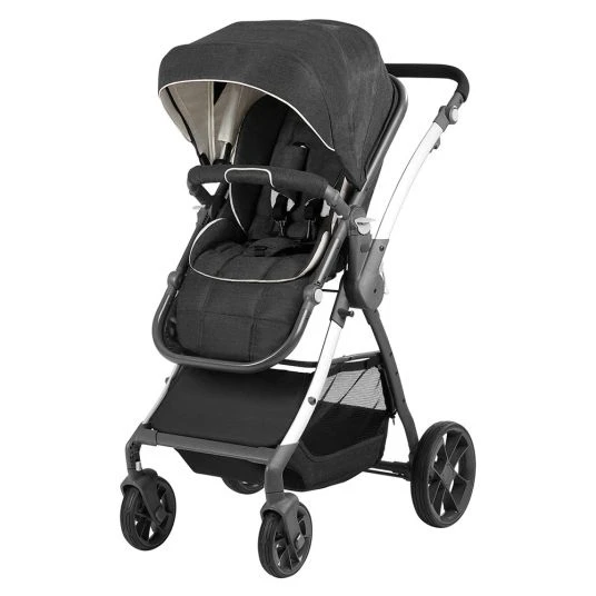 Der Kombi-Kinderwagen Yuu – Melange Anthrazit von Knorr-Baby ist ein leichter und filigran designter Kombi-Kinderwagen mit Aluminium-Gestell und vielen komfortablen Extras. Dank der integrierten Easy-Fold-Technik kannst Du ihn auch bestens auf Reisen mitnehmen. Einmal zusammengeklappt weist er ein kompaktes und kleines Faltmaß auf, mit dem er prima in den Kofferraum passt.