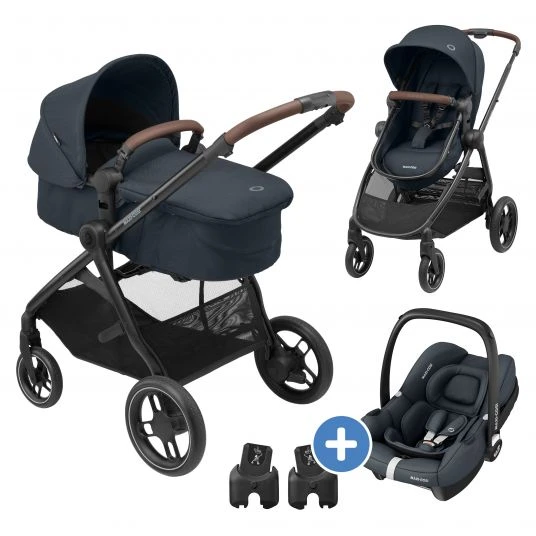 - 3-teiliges Kombi-Kinderwagen-Set ab der Geburt mit Maxi Cosi Zelia³ & Cabriofix i-Size sowie passendem Adapter