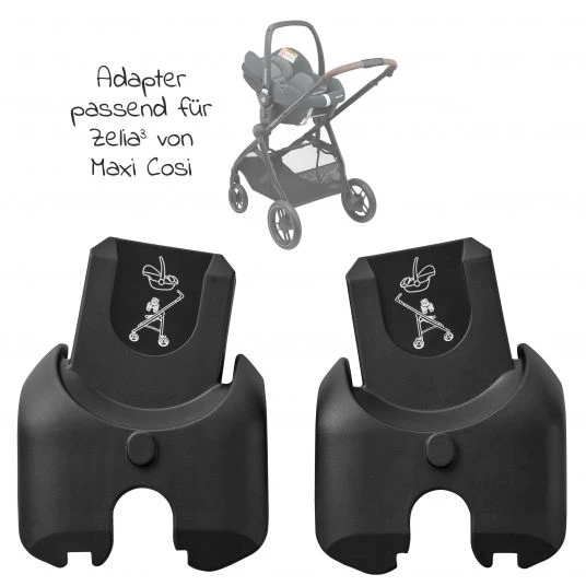 Mit diesem Adapter kannst Du den Maxi Cosy Kinderwagen Zelia³ mit vielen Babyschalen von Maxi Cosi kombinieren. Dazu steckst Du die Adapter einfach auf das Kinderwagengestell und setzt danach die Babyschale auf. Auf diese Weise verwandelst Du Deinen Maxi Cosi Zelia³ und Deine Babyschale in ein praktisches Travelsystem.