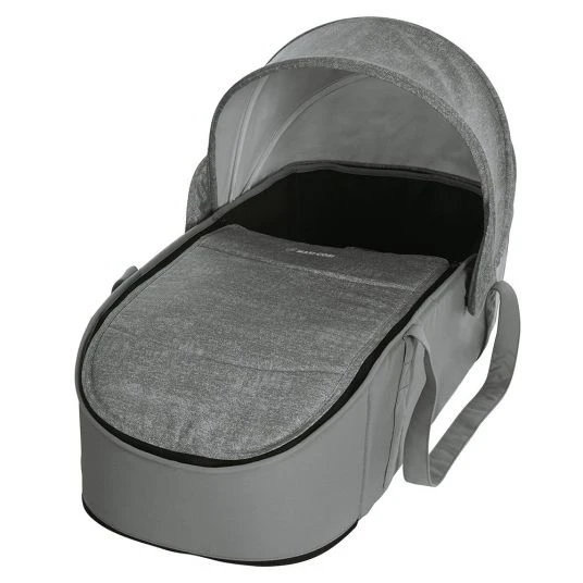 Mit der Tragetasche Laika Soft – Nomad Grey von Maxi-Cosi kannst Du Deinen Buggy oder Sportwagen bereits ab der Geburt nutzen. Die Tasche ist besonders weich gepolstert und bettet Babys von der Geburt bis zu einem Gewicht von 9 kg. Beindecke und Verdeck schützen vor Wind und Wetter und verwandeln Deinen Kinderwagen in einen prima Erstlingswagen. Praktisch: Die Wanne ist schnell auf dem Gestell befestigt und kann nach Gebrauch einfach zusammengefaltet werden. Perfekt für den Kofferraum. An den beiden Trageriehmen kannst Du sie einfach und bequem überall mit hinnehmen.