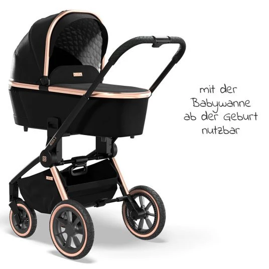 Beim 2 in 1 Kombi-Kinderwagen Resea S Edition Rose Gold von Moon in der Edition-Version erhältst Du zusätzlich zur Basic-Ausstattung noch das Komfort-Paket mit Luftreifen, eine PREMIUM Matratze der Marke Träumeland, das patentierte CIRC AIR-System sowie ein extra Panoramafenster in der Babywanne. Das CIRC AIR-System von Moon sorgt in Verbindung mit der atmungsaktiven Premium-Matratze von Träumeland für eine ideale Klimatisierung und Sauerstoffzufuhr in der Babywanne.