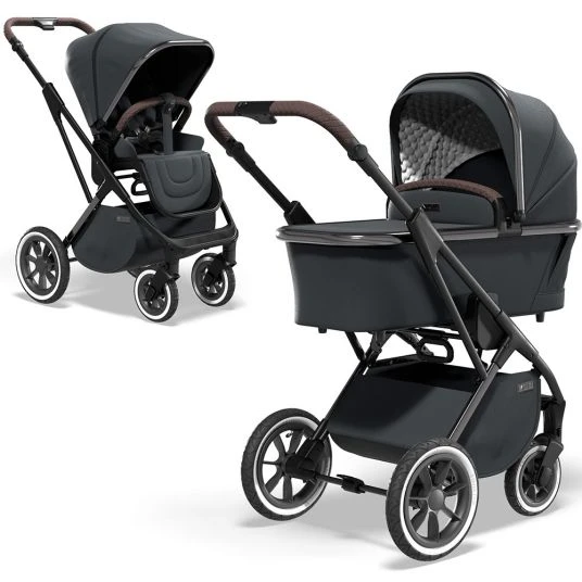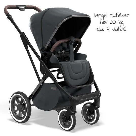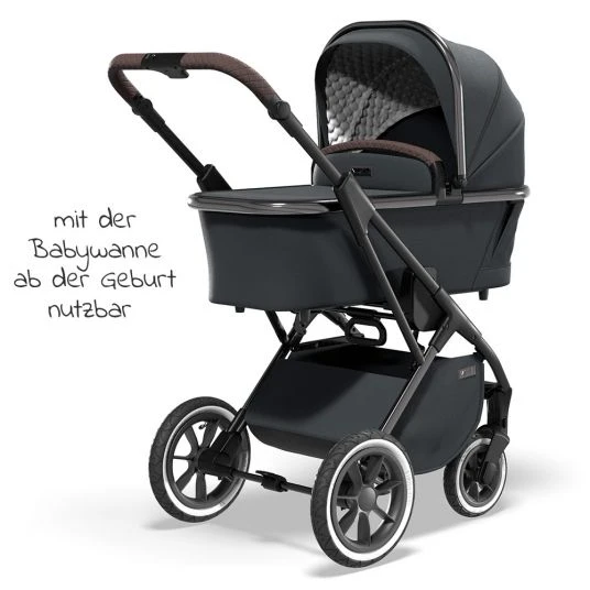 - Besonderheiten: Allradfederung, Bezüge von Schieber und Schutzbügel aus veganem Lederimitat, Sitz auf Tischhöhe, Babywanne mit CIRC Air-System und Panoramafenster, Träumeland Premium-Matratze