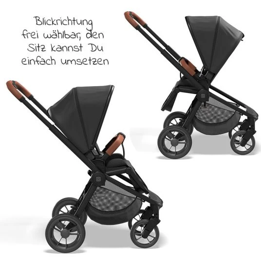 - Ausstattung: umsetzbare Sitzeinheit, weich gepolsterte Rückenlehne bis in Liegeposition verstellbar, gepolsterter mitwachsender 5-Punkt-Gurt, extra großes Verdeck mit Sichtfenster, UV-Schutz 50+, höhenverstellbarer Schieber, Gummiräder (23 cm), schwenkbare und feststellbare Vorderräder (16 cm), Feststellbremse, abnehmbarer, aufklappbarer und abnehmbarer Schutzbügel, großer Einkaufskorb