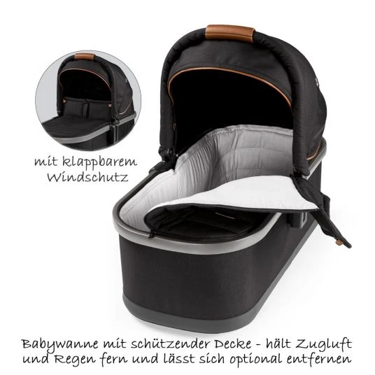 Dank der bequem gepolsterten Babywanne ist Ypsi ab der Geburt einsetzbar. Die Wanne wird mit Schutzdecke und Verdeck geliefert. So haben Wind und Wetter keine Chance. Möchte Dein Baby einen Blick nach Draußen werfen, kannst Du den Kopfbereich 3-fach erhöhen. Am eleganten Tragegriff aus Lederimitat kannst Du die Wanne ganz leicht auf das Gestell aufsetzen und auch wieder abnehmen. Willst Du die Wanne auf Reisen mitnehmen und dafür im Kofferraum transportieren, kannst Du sie klein und platzsparend zusammenfalten.