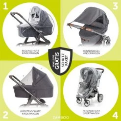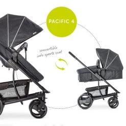 Hauck Kinderwagen-Set Pacific 4 Trioset inkl. Babywanne, Autositz und Sportwagen – Melange Charcoal