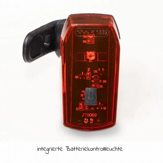 Das LED Batterierücklicht für Queridoo Fahrradanhänger sorgt für zusätzliche Sichtbarkeit und Sicherheit im Straßenverkehr oder auf dem Gelände. Es lässt sich sehr schnell ohne Werkzeug anbringen und passt zu allen Queridoo Kidgoo, Kidgoo Sport und Sportrex Buggy-Anhängern. Den Neigungswinkel kannst Du beliebig einstellen und jederzeit ändern. Da es mit Batterien funktioniert und eine Kontrollleuchte enthält, lässt es sich sehr lange und einfach nutzen.