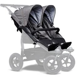 Die XXL-Komfortsitze für den Geschwister- und Zwillingswagen Duo – Premium Grau ermöglichen die Nutzung Deines Kinderwagens Duo über das Kleinkindalter hinaus. Auch Kinder im Kindergartenalter werden bei Wanderungen und längeren Aufenthalten im Freien irgendwann müde. Im Sportsitz können sie sich zwischendurch ausruhen – oder auch einfach mal die Augen zumachen. Die Sitzflächne der Sportsitze sind stufenlos bis in die Liegeposition verstellbar um sie optimal den Bedürfnissen Deiner Kinder anpassen zu können. Hier findet Dein Nachwuchs im Alter von mind. 9 Monaten bis ca. 4 Jahre (Gesamtbelastung von 45 kg) bequem Platz. Zusätzlich sind die Sitze mit erweiterbaren Fußbrettern ausgestattet. So können Deine Kleider in jedem Alter bequem die Füße hochlegen. Sicherheit muss dabei sein: Deshalb ist jede Sitzeinheit nicht nur mit einem Kopfpolster sondern auch mit einem gut gepolstertem 5-Punkt-Gurtsystem ausgestattet. Die beiden Sitzeinheiten teilen sich einen großen, gepolsterten Schutzbügel, der sich für den leichten Ein- und Ausstieg öffnen lässt. Für Schatten im Inneren sorgen zwei große, ausziehbare Verdecke. Wird es Draußen einmal ungemüglich, kommen in die beiden in die Rückseite der Sitze integrierten Regenverdecke zum Einsatz.