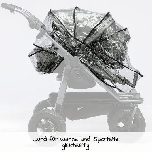 Das 2-teilige Regenverdeck-Set für den Geschwisterwagen Duo von tfk hält Deine Kinder bei schlechtem Wetter zuverlässig trocken. Die Abdeckungen halten Wind, Regentropfen oder Schneeflocken von Deinen Beiden fern. Durch die transparente Folie hat Dein Nachwuchs trotzdem gute Sicht nach Draußen.