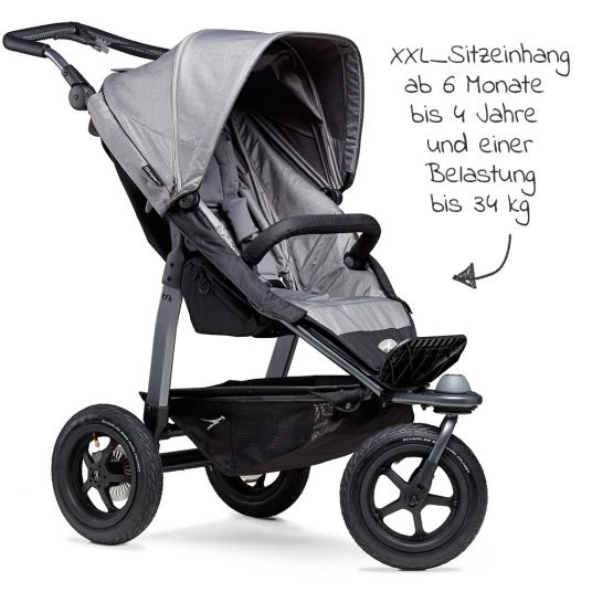 Der Buggy & Sportkinderwagen Mono mit XXL-Sportsitz – Grau ist die konsequente Weiterentwicklung der bewährten TFK-Klassiker Trail und Adventure. Wie bei seinen Vorgängern werden auch hier Qualität und Sicherheit großgeschrieben.