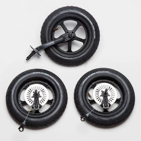 Die 3 Ersatz-Lufträder von tfk lassen sich ruckzuck montieren – so ist der Mono schnell wieder einsatzbereit und Du kannst ihn auch weiterhin verwenden. Die Lufträder von Schwalbe machen den Spaziergang durch Wald und Feld zum Vergnügen – selbst dann, wenn es mal etwas holprig oder rasanter wird. Stöße von unten federn die profilierten 12-Zoll-Luftreifen gekonnt ab. So ist Dein Nachwuchs wieder überall komfortabel unterwegs.