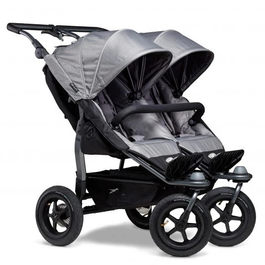 Der Geschwister- und Zwillings-Sport-Kinderwagen Duo – Grau mit 2 XXL-Sportsitzen ist die konsequente Weiterentwicklung der bewährten TFK-Klassiker Twin Trail und Twin Adventure. Wie bei seinen Vorgängern werden auch hier Qualität und Sicherheit großgeschrieben.