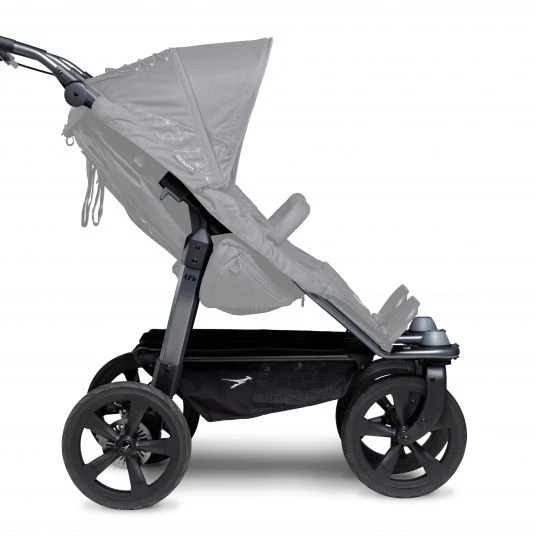 Das TFK Gestell mit Luftreifen für Duo ermöglicht Dir eine Nutzung ab der Geburt. Mit der Kombi-Einheit können Geschwister die einen Altersunterschied von mehr als 1,5 Jahre haben, zusammen fahren. Ab der Geburt bis zu ca. 9 Monaten liegt das Geschwisterchen erst in der separat erhältlichen Babywanne und wenn es sitzen kann, baust Du die Babywanne zum Sportsitz um und beide können nebeneinander sitzen.