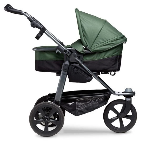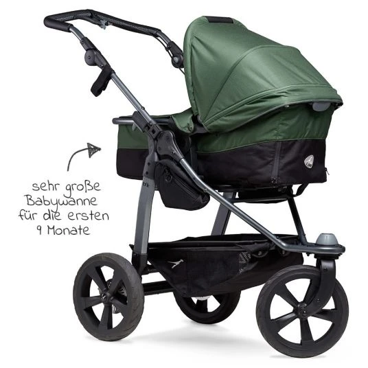Der Kombi-Kinderwagen Mono mit zum Sportsitz umbaubarer Babywanne – Olive ist die konsequente Weiterentwicklung der bewährten TFK-Klassiker Trail und Adventure. Wie bei seinen Vorgängern werden auch hier Qualität und Sicherheit groß geschrieben.