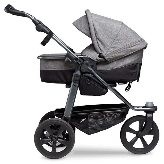 Der Kombi-Kinderwagen Mono mit zum Sportsitz umbaubarer Babywanne – Premium Grau ist die konsequente Weiterentwicklung der bewährten TFK-Klassiker Trail und Adventure. Wie bei seinen Vorgängern werden auch hier Qualität und Sicherheit groß geschrieben.